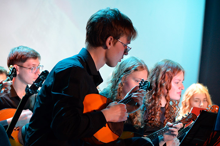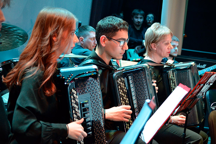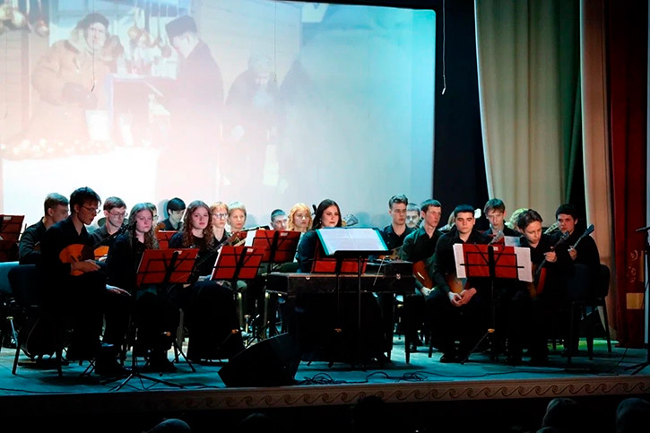 На сцене блистали творческие коллективы Барабинского филиала НОККиИ: эстрадно-духовой оркестр под управлением Алексея Гончарова и оркестр русских народных инструментов под управлением Анатолия Шевченко. Особую атмосферу праздника создали выступления солистов: Сергея Сотникова, Яны Губановой, Ксении Петрищевой, Людмилы Апанасенко, Дэниса Буртелова и мужского ансамбля "Бравые ребята".