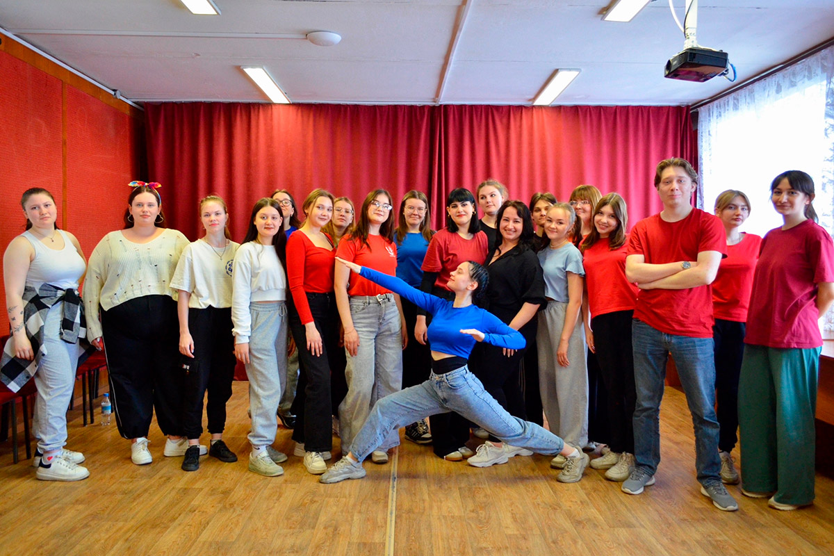 Для студентов 1 и 2 курсов Анастасия Алексеевна Волкова, руководитель кружка МБУК "Центр культуры, спорта и молодежной политики", провела зажигательную зарядку "Движение - это жизнь!".
