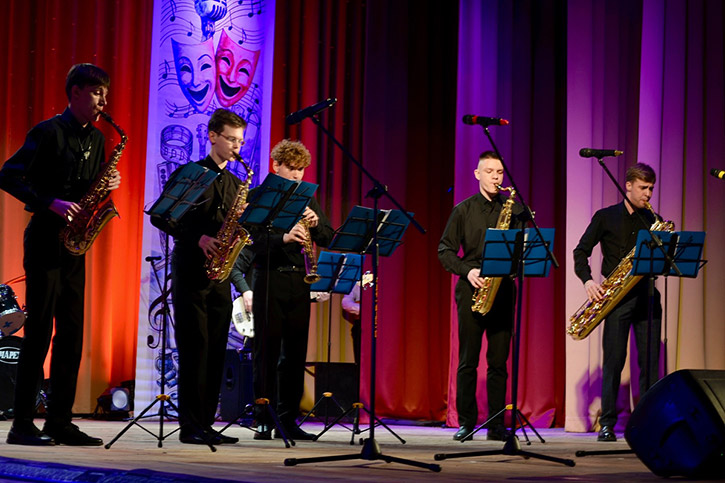 "АРТИСТИЗМ" - следующий компонент формулы - был воплощен в выступлении театрального коллектива "Азарт" (руководитель Наталья Антоненко) с этюдом "Золотая молодежь" и инструментального ансамбля "Sax Groove" (руководитель Алексей Гончаров) с номером "Danza" - пьесой из нескольких композиций.