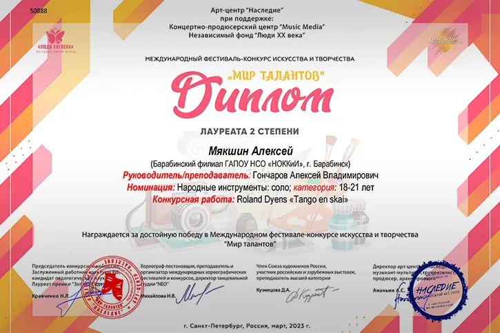 МЕЖДУНАРОДНЫЙ ФЕСТИВАЛЬ-КОНКУРС ИСКУССТВА И ТВОРЧЕСТВА "МИР ТАЛАНТОВ"