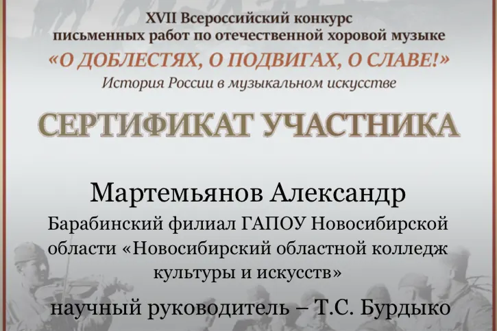 ОТЕЧЕСТВЕННАЯ МУЗЫКА "О ДОБЛЕСТЯХ, О ПОДВИГАХ И СЛАВЕ"