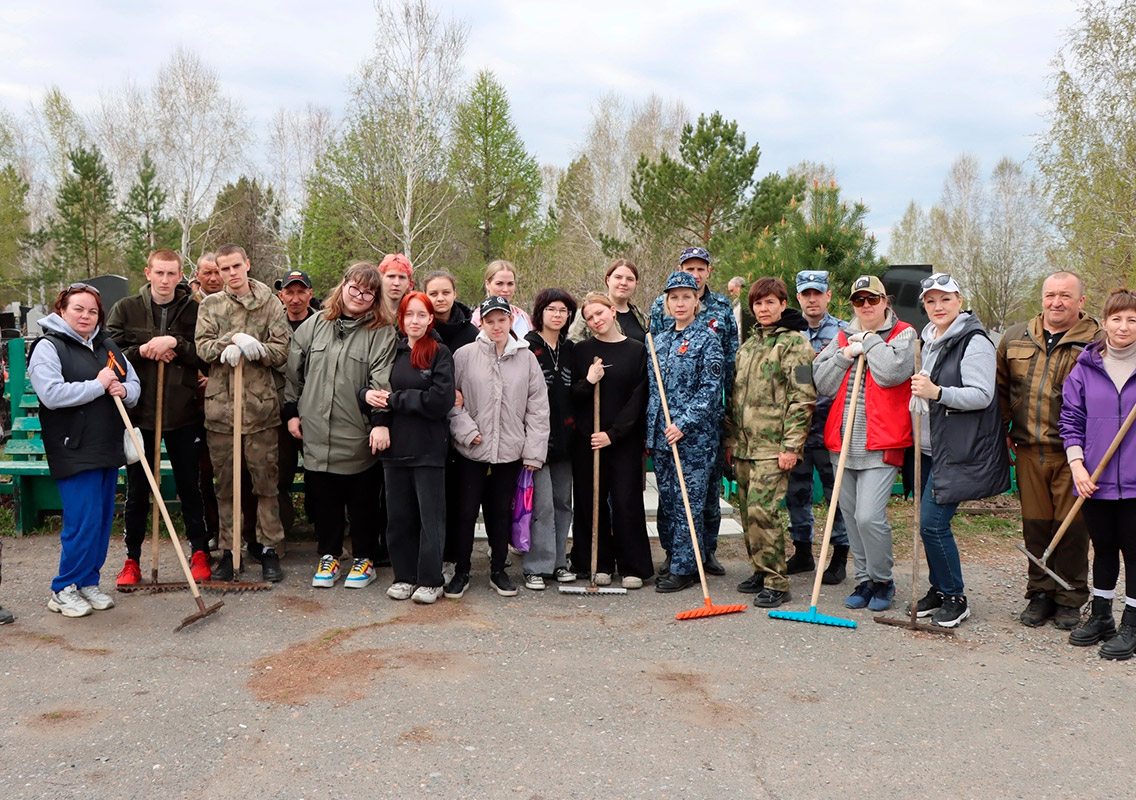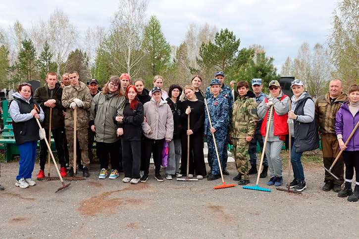 В акции "Дорога к обелиску" по уборке захоронений ветеранов на кладбище "Покровское", в преддверии 80-летия Победы в Великой Отечественной войне, организованной МКУ "Центр культуры и досуга" совместно с МКУ "Ритуал" города Барабинска;