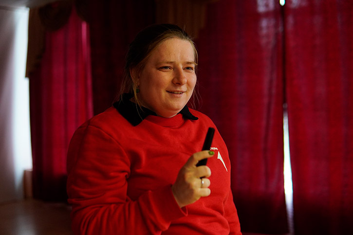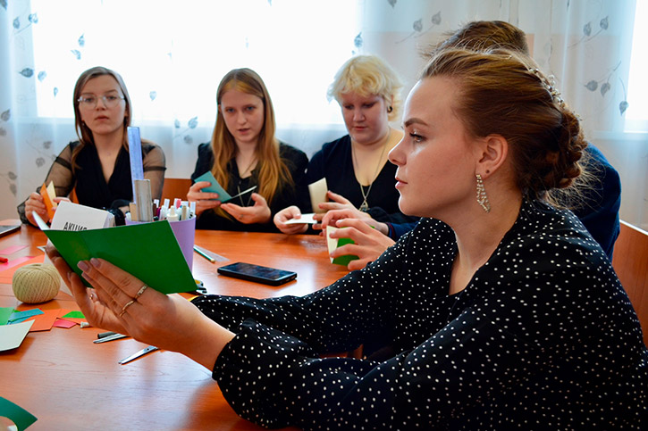 В волонтерской деятельности (плетение маскировочных сетей, изготовление браслетов, блиндажных свечей, помощь семьям участников СВО);