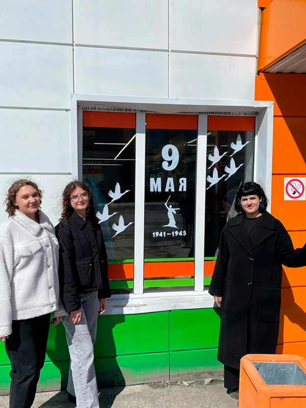 Во всероссийской акции "Окна Победы", посвященной 80-летию Великой Победы. 22.04.2025. В акции приняли участие 15 студентов, 2 преподавателей;